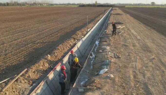 初冬時(shí)節(jié),正值高標(biāo)準(zhǔn)農(nóng)田製作施工「黃金期」。在天宮廟鎮(zhèn)孫為莊村的2023年高標(biāo)準(zhǔn)農(nóng)田製作項(xiàng)目施工現(xiàn)場(chǎng),工人們正為排水溝臺(tái)面支水泥模板,排水溝建成後,農(nóng)戶再也不用憂慮陰雨天的農(nóng)田排澇問題。