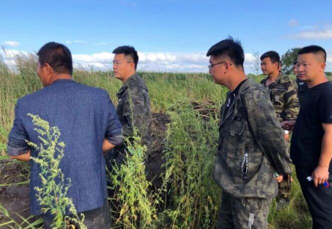 在寶清鎮四新村,農業技能推廣中心作業人員下沈一線,協助農民檢查農作物受災及易發病蟲害狀況並給出輔導定見。